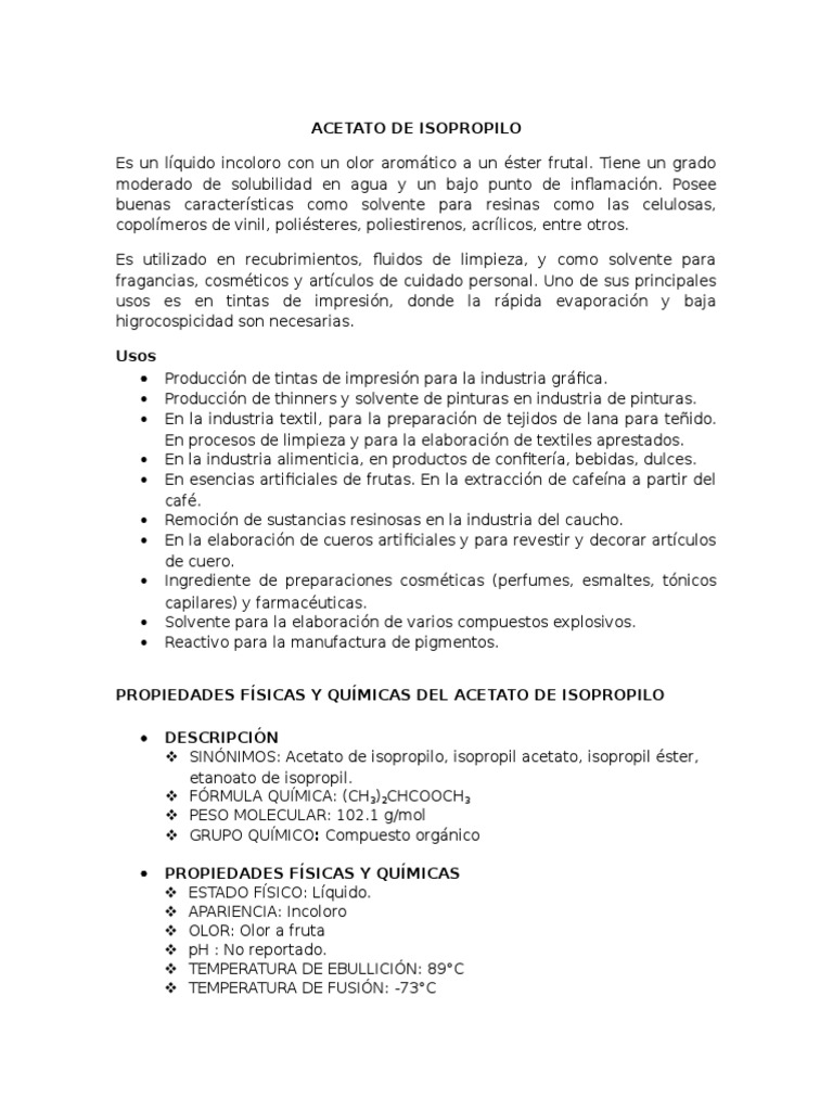 Acetato de Isopropilo from imgv2-2-f.scribdassets.com. Para más información pulse aquí para ir al website. We did not find results for: Check spelling or type a new query. Maybe you would like to learn more about one of these?